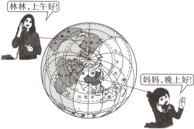 15. (教材改编题·P23 活动)林林和正在国外出差的妈妈,利用周末的时间进行了一次通话。读图,回答下列问题。