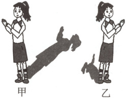 (5) 下面为玲玲同学不同时间的影子。如果是同一天,影子甲和乙更接近正午的是