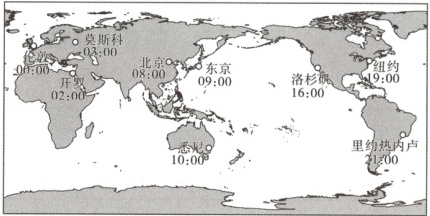 (2024·山西)人类共同生活在地球家园,不同地区存在着时间差异。读图,完成 13~14 题。