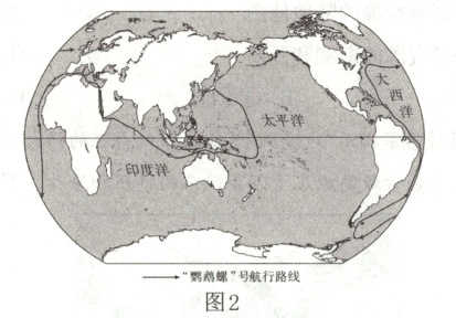 《海底两万里》是法国小说家儒勒 · 凡尔纳的代表作之一,他带领读者登上“鹦鹉螺”号,随着尼摩船长和他的“客人们”饱览变幻无穷的海底世界。图 2 为“鹦鹉螺”号航行路线图。读图,完成 14~16 题。