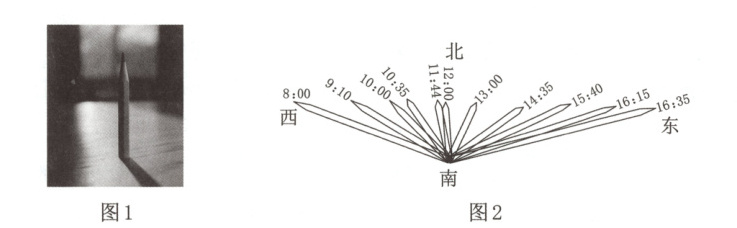③ 分时段绘制铅笔的影子形态并记录时间(如图2);