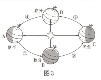 3. 庆庆做实验的当天(9月7日),地球运行至图3中的