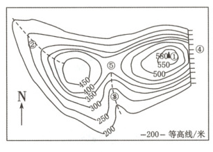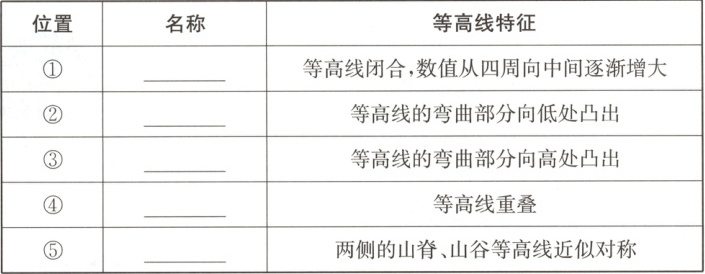 (4)①山顶;②山脊;③山谷;④陡崖;⑤鞍部