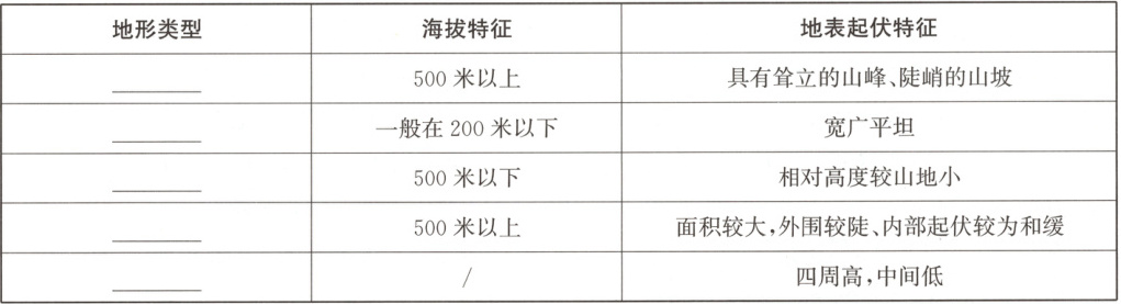 山地;平原;丘陵;高原;盆地