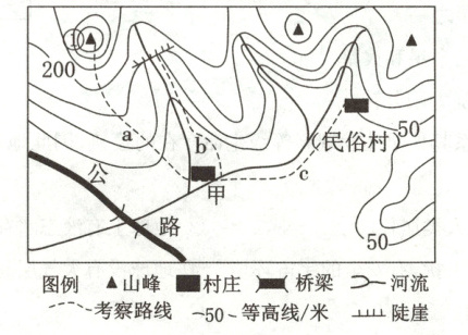 (4)c;等高线稀疏,坡度缓,省力