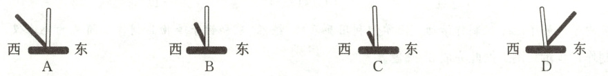米。此时夕阳西下,下图中竹竿影子符合事实的是A