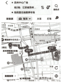 (2024·昆山期中)随着计算机、智能手机及互联网的普及,数字地图和卫星导航的应用越来越广泛,极大地方便了人们的生活。家住苏州中心附近的小明一家准备周末去参观苏州博物馆,出发前用手机查阅地图,屏幕如图所示。据此完成6~8题。