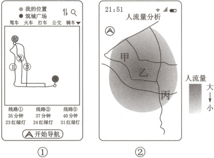 随着计算机、智能手机、互联网的普及,数字地图和卫星导航系统的应用越来越广泛,极大地方便了人们的生活。如图为两种不同类型的数字地图。