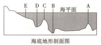地表各种高低起伏的形态,总称为地形。陆地表面和海底的地形多种多样。读海底地形剖面图,完成33~34题。
