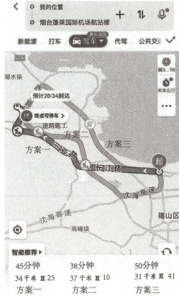 (2024·山东烟台)小明在省外读书,开学季爸爸开车送他去机场。出发前,小明用手机软件查看路况。读小明查阅的电子地图截图,完成3~5题。