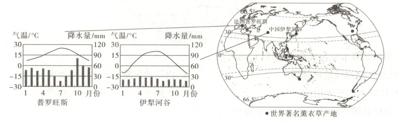 31. 普罗旺斯、伊犁河谷两地有利于薰衣草种植的共同气候特征是 (