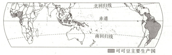 可可豆是制作巧克力的原材料,炎热多雨的环境最适宜可可树的生长。下图为可可豆主要生产国示意图。据此完成27~29题。