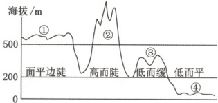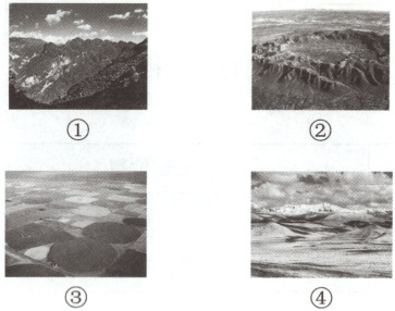 11. 图中①②③④表示的地形类型依次是 (