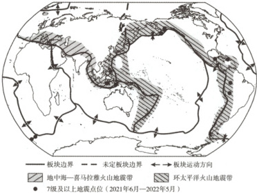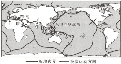 海洋是人类未来发展的前景,中国对海洋事业的发展非常重视。2020 年 11 月 10 日,中国“奋斗者”号载人潜水器在马里亚纳海沟 10 909 米处成功坐底,创造了中国载人深潜的新纪录。读六大板块分布图,完成 7~9 题。