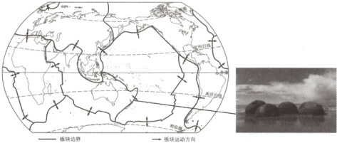 在新西兰南岛东海岸的海滩上,散布着大小不一、形状浑圆的石头,据地质学家研究,这是海底火山喷发后形成的玄武岩被埋到了海底,“不安分”的板块构造活动,将海底的玄武岩给“顶”了上去。读板块分布示意图,完成 10~11 题。