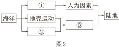 现象。这种现象的发展变化具有多方面原因,请将“海平面升降”“填海造陆”“自然因素”等词语,对应填入图 2 中的正确位置上。①