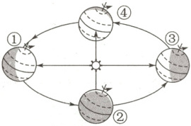 2024年12月4日,在巴拉圭亚松森举行的联合国教科文组织保护非物质文化遗产政府间委员会第19届常会上,中国申报的“春节——中国人庆祝传统新年的社会实践”通过审批,列入联合国教科文组织人类非物质文化遗产代表作名录。如图为地球的公转示意图。读图,回答7~10题。