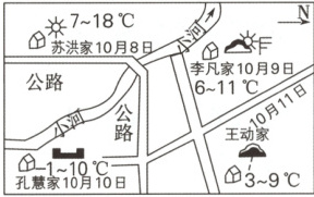 (4)10月10日学习小组走访到孔慧家时,明显感觉到气温比到苏洪家时