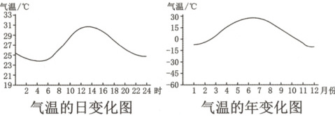 读气温的日变化图和北半球气温的年变化图, 完成 $4 \sim 5$ 题。