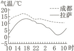 11. 下图为成都和拉萨某时段气温变化曲线图,与成都相比, 拉萨 (