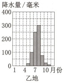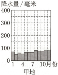 ,如甲地;有的地区,降水的季节变化比较不均匀