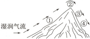 某学校地理兴趣小组对附近山地进行了研学考察,回来后小华绘制了该山地湿润气流运动情况示意图。读图,完成4~5题。