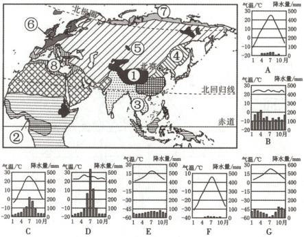 灾害。(4) 图中③④⑦对应的气候资料图分别为