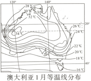 3. 读图归纳澳大利亚大陆1月气温分布特点: