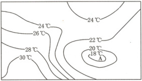 ℃以上,A处等温线呈封闭形态,表示这里是低温