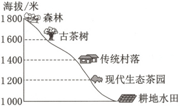 4. 材料中“山上古茶林区比山下耕地水田区气温低3~4℃”,符合海拔高度对气温的影响规律。