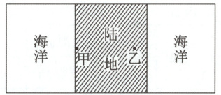 例2(2024·海南)地理实践是学习地理的有效途径,某地理小组搜集到某区域海陆分布示意图和甲、乙两地气候资料表。据此完成(1)~(2)题。