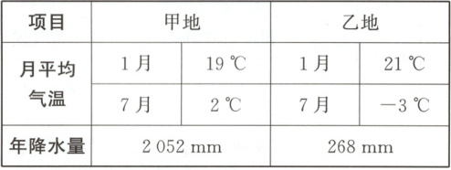 (2) 关于甲、乙两地的自然地理特征的叙述,正确的是
