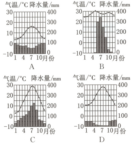 6. 能反映“柑橘花海岸”气候特征的示意图是