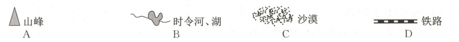 2. 军军在读中国地形图时发现了以下图例和注记,其中的图例和注记搭配不正确的是 (