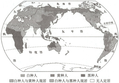 人种的肤色等体质特征是长期适应不同自然环境形成的。中国手机企业针对非洲市场开发了符合当地人审美的美颜美发功能等本土化服务,如提供深肤色和小卷发的拍照模式。读世界人种分布图,完成9~10题。