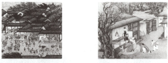 唐代著名诗人杜甫的《水槛遣心二首(其一)》中有一句“城中十万户,此地两三家”描写了城市与乡村不同的场景。下图分别为古代城镇与乡村景观图。据此完成3~4题。