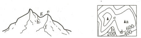 老师带同学们去了郊外的山里秋游,在老师的指导下,华华同学绘制了该山体示意图和对应的等高线地形图。读图,完成13~16题。