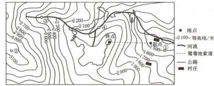 “窗含西岭千秋雪,门泊东吴万里船”。近期,某校组织学生到成都西岭雪山进行研学实践。如图为成都西岭雪山局部地形图。据此完成17~19题。