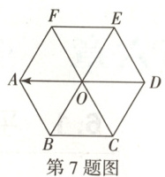 7.【题型三、四】(原创题)如图所示,点O是正六边形ABCDEF的中心,则以图中点A,B,C,D,E,F,O中的任意一点为起点,与起点不同的另一点为终点的所有向量中,与$\overrightarrow{OA}$共线的向量有
