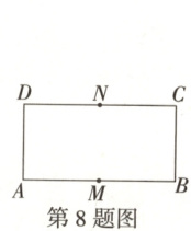 8.39[提示:根据$\overrightarrow{AD}=\overrightarrow{MN}=\overrightarrow{BC}$,可得相等向量有3对;根据$\overrightarrow{AM}=\overrightarrow{MB}=\overrightarrow{DN}=\overrightarrow{NC}$,可得相等向量有6对;根据$\overrightarrow{AN}=\overrightarrow{MC}$,可得相等向量有1对;根据$\overrightarrow{BN}=\overrightarrow{MD}$,可得相等向量有1对;根据$\overrightarrow{AB}=\overrightarrow{DC}$,可得相等向量有1对.因此共有12对相等向量,而每对相等向量可产生两对相反向量,这样的相反向量共有24对,又每两个点产生的向量有一对相反向量,这样的相反向量共有$5 + 4 + 3 + 2 + 1 = 15$(对).综上,相反向量共有39对.]