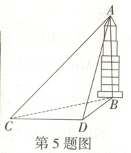 5.212[提示:由∠BCD = 15°,∠BDC = 120°,可得∠CBD = 45°,又CD = 100米,由正弦定理可得$\frac{CD}{\sin\angle CBD}$ = $\frac{BC}{\sin\angle BDC}$,即$\frac{100}{\frac{\sqrt{2}}{2}}$ = $\frac{BC}{\frac{\sqrt{3}}{2}}$,可得BC = 50$\sqrt{6}$米,在Rt△ABC中,∠ACB = 60°,所以AB = BC·tan∠ACB = 50$\sqrt{6}$×$\sqrt{3}$ = 150$\sqrt{2}$ ≈ 150×1.414 ≈ 212(米).]