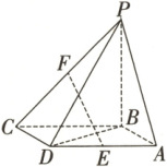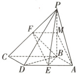 (1)证明:如图,取PB的中点M,连接AM,MF,因为F为PC的中点,所以MF//BC,MF = $\frac{1}{2}$BC,由已知得BC//AD,BC = AD.又E为AD的中点,所以AE//BC,AE = $\frac{1}{2}$BC,所以MF//AE且MF = AE,所以四边形AEFM是平行四边形,所以EF//AM,又AM⊂平面PAB,EF⊄平面PAB,所以EF//平面PAB.