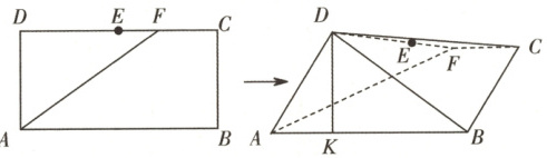 2.如图所示,在长方形 $ABCD$ 中,$AB = 2$,$BC = 1$,$E$ 为 $DC$ 的中点,$F$ 为线段 $EC$(端点除外)上一动点,现将 $\triangle AFD$ 沿 $AF$ 折起,使平面 $ABD \perp$ 平面 $ABCF$. 在平面 $ABD$ 内过点 $D$ 作 $DK \perp AB$,$K$ 为垂足,设 $AK = t$,则 $t$ 的取值范围是