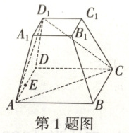 1.D[提示:如图所示,连接$A_1C_1$,过点$A_1$作$A_1H\perp AC$于点$H$,因为$A_1C_1=4\sqrt{2}$,$AC=6\sqrt{2}$,所以$AH=\sqrt{2}$,因为四棱台的高为$A_1H$,所以四棱台的体积为$\frac{1}{3}(4^2+6^2+4×6)× A_1H=\frac{76\sqrt{22}}{3}$,解得$A_1H=\sqrt{22}$,所以侧棱长$AA_1=\sqrt{AH^2+A_1H^2}=2\sqrt{6}$,过点$D_1$作$D_1F\perp AD$于点$F$,过点$A_1$作$A_1G\perp AD$于点$G$,由对称性可知$D_1F=A_1G=\frac{6 - 4}{2}=1$,$GF=A_1D_1=4$,所以$AF=6 - 1=5$,而$DD_1=AA_1=2\sqrt{6}$,所以$D_1F=\sqrt{24 - 1}=\sqrt{23}$,所以$AD_1=\sqrt{23+25}=4\sqrt{3}$,同理$CD_1=AD_1=4\sqrt{3}$,分别在棱$DC$,$DD_1$上取点$N$,$M$,使得$DN=NC$,$DM=MD_1$,易得$ME=NM=\frac{1}{2}AD_1=2\sqrt{3}$,$EN=\frac{1}{2}AC=3\sqrt{2}$,所以截面多边形的周长为$4\sqrt{3}+3\sqrt{2}$.