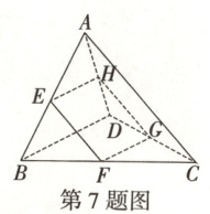 7.AD[提示:$\because AE:EB=AH:HD$,$\therefore EH// BD$,又$CF:FB=CG:GD$,$\therefore FG// BD$,$\therefore EH// FG$,即$E$,$F$,$G$,$H$四点共面,$A$正确;$\because\frac{EH}{BD}=\frac{AE}{AE + EB}=\frac{m}{m + 1}$,$\therefore EH=\frac{m}{m + 1}BD$,同理$FG=\frac{n}{n + 1}BD$,当$m\neq n$时,$EH\neq FG$,此时四边形$EFGH$为梯形,即直线$EF$与$GH$有交点,交点在平面$ABC$内,又在平面$ADC$内,而平面$ABC\cap$平面$ADC = AC$,$\therefore$直线$EF$与$GH$的交点在直线$AC$上,$B$错误,$C$错误;由$EH=\frac{m}{m + 1}BD$,$FG=\frac{n}{n + 1}BD$及$m = n$,得$EH = FG$,$\therefore$四边形$EFGH$为平行四边形,又$AC\perp BD$,故$EF\perp EH$,故平行四边形$EFGH$为矩形,由$EF// AC$,设$\frac{EF}{AC}=\frac{BE}{AB}=x$,$\therefore EF = 4x$,而$EH// BD$,故$\frac{AE}{AB}=\frac{EH}{BD}=1 - x$,$\therefore EH = BD(1 - x)=2(1 - x)$,则矩形$EFGH$的面积$f(x)=EF· EH=-8x^2 + 8x(0\lt x\lt1)$,可得$f(x)_{\max}=f(\frac{1}{2})=2$,$D$正确.]