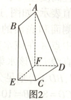 5.(2025·重庆市主城区七校联考高一下期末)如图1,在直角梯形$ABCD$中,$BC// AD$,$AB\perp AD$,$BC = 1 2$,$AD = 1 3$,$AB = 2 \sqrt { 3 }$,$E$为线段$BC$上的一点,$BE = 9$,过$E$作$AB$的平行线交$AD$于$F$,将矩形$ABEF$翻折至与梯形$ECDF$垂直得到六面体$BCE - ADF$,如图2,则六面体$BCE - ADF$的体积为(