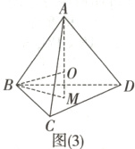 (3)所示,在正四面体$A - BCD$中,$M$为$\triangle BCD$的中心,$O$是正四面体$A - BCD$外接球的球心,连接$BM$,$BO$,$AM$,由正四面体的性质可知$O$在$AM$上。因为$AB = 4$,所以$BM=\frac{2}{3}×\sqrt{4^{2}-2^{2}}=\frac{4\sqrt{3}}{3}$,则$AM=\sqrt{4^{2}-(\frac{4\sqrt{3}}{3})^{2}}=\frac{4\sqrt{6}}{3}$。因为$BO^{2}=BM^{2}+OM^{2}=(AM - OM)^{2}$,所以$BO^{2}=(\frac{4\sqrt{3}}{3})^{2}+OM^{2}=(\frac{4\sqrt{6}}{3}-OM)^{2}$,解得$BO = \sqrt{6}$,则正四面体$A - BCD$外接球的体积是$\frac{4}{3}\pi R^{3}=\frac{4}{3}\pi×(\sqrt{6})^{3}=8\sqrt{6}\pi$。因为勒洛四面体的体积小于正四面体$A - BCD$外接球的体积,所以C错误。因为$BE = AB = 4$,所以$OE = 4-\sqrt{6}$,故D正确。]