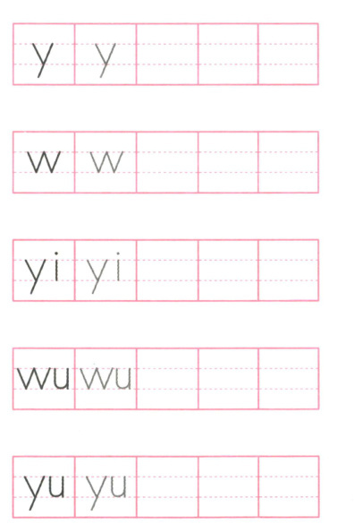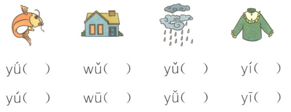 第一行在第一个 yú 后面的括号画√,在 wū 后面的括号画√ ,在第一个 yǔ后面的括号画√,在 yī后面的括号画√。