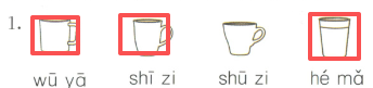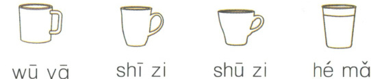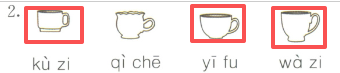 九 我会根据拼音把每组中属于同类事物的杯子涂上相同的颜色。