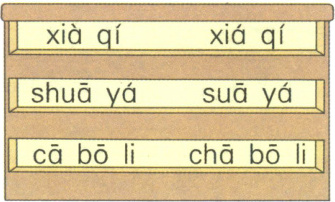 十 我能从下面的货架上选择正确的拼音补写句子。